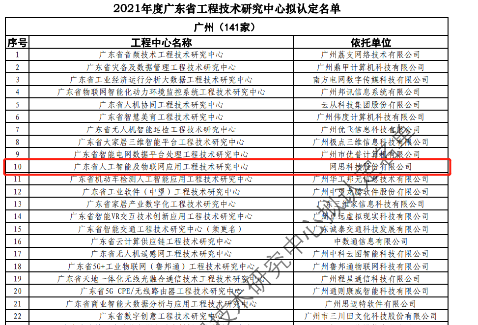 日前,广东省科技厅发布2021年度广东省工程技术研究中心名单。经过层层筛选、专家评审,依托九游在线官方官网建设的“广东省人工智能及物联网应用工程技术研究中心”榜上有名。广东省工程技术研究中心主要依托省内行业、领域具有科技实力的、拥有一定规模以上创新型企业建设,部分依托高校和科研院所组建。工程中心旨在